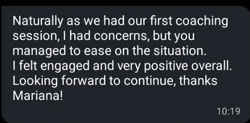 "I was skeptical about coaching at first, but Mariana helped me find solutions I didn't even know existed. I'm more clear on my needs and feel empowered to achieve my goals."